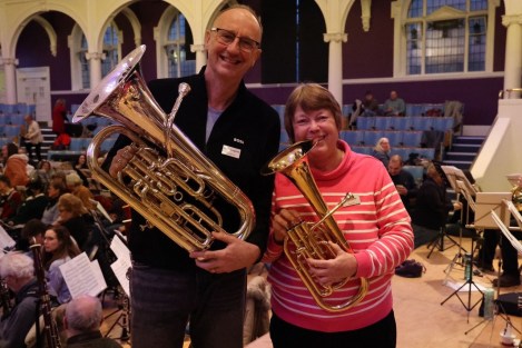 We are still buzzing from a truly epic ‘Blow the Dust off Your Instrument’ orchestral playing day on Saturday.  Over 180 ‘dusty’ instrumentalists squeezed into the Albert Hall for a fun, relaxed day of music making with our expert tutors and conductors. We were particularly delighted to welcome so many new people, including cricketing commentator, Jonathan Agnew, who has recently returned to playing the Euphonium after a break of nearly 40 years!