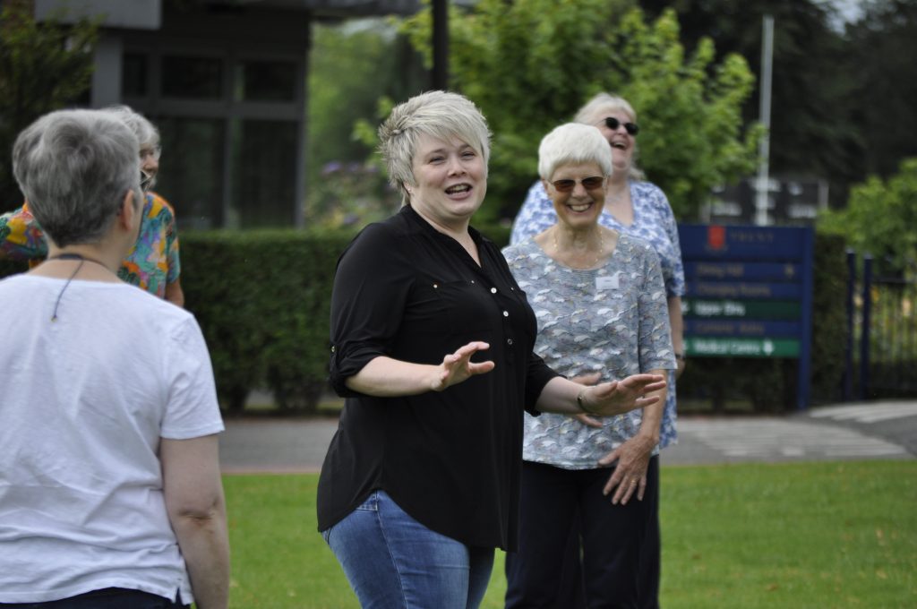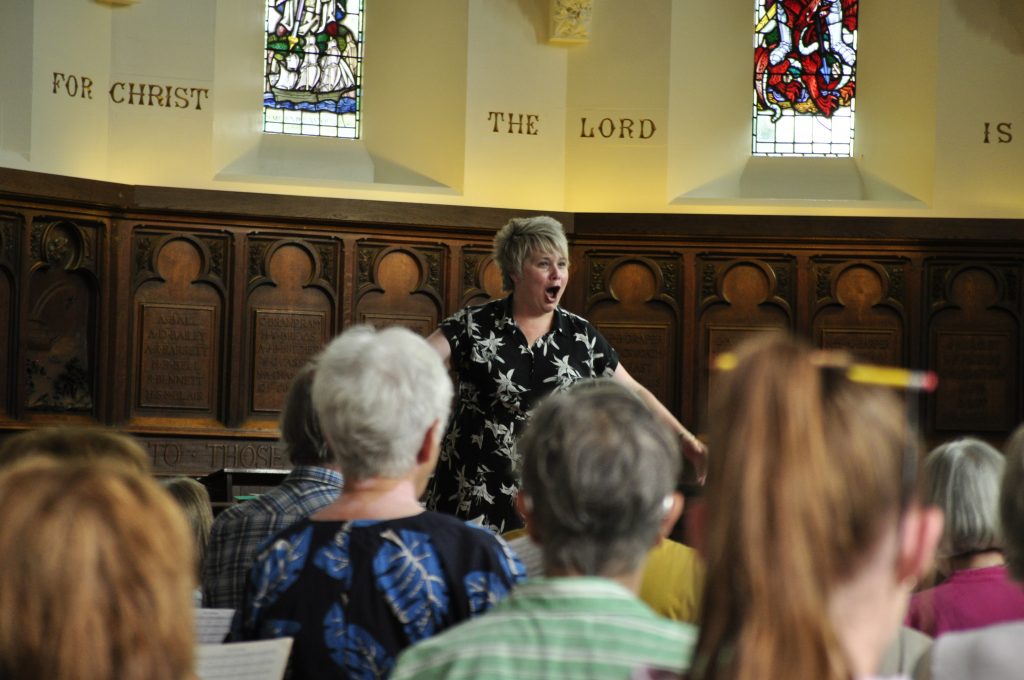 As has become tradition, the choir started their day outside with Hilary for some warm ups ahead of another full day of singing, exploring their wide repertoire from Zadok the Priest to Ain’t no mountain high enough…