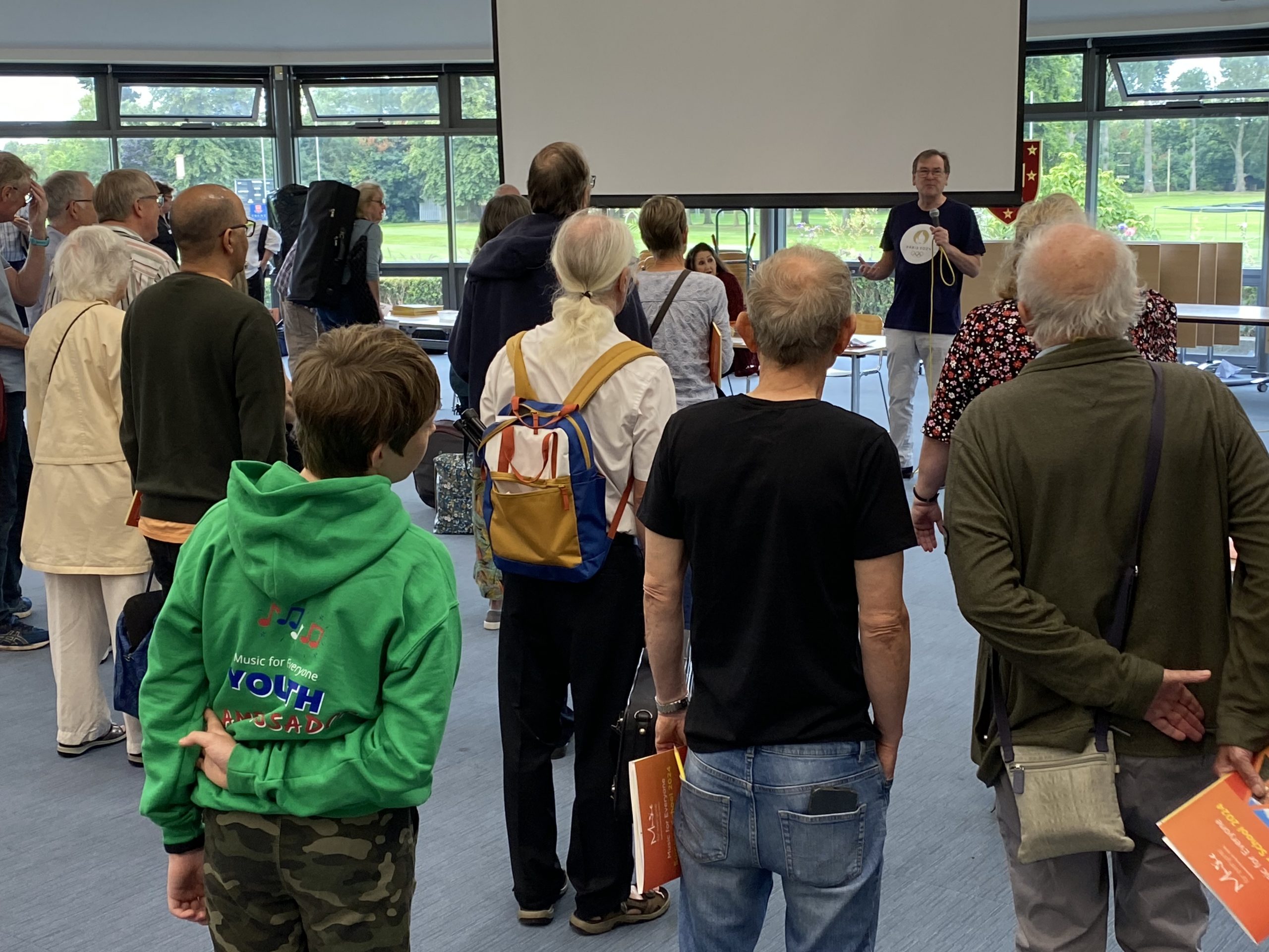 Fortunately for us, there was no rain and no upside down flag at the Opening Ceremony for MfE’s Olympic themed 2024 Summer School today. We have once again returned to the picturesque setting of Trent College in Long Eaton, beginning with the traditional tea, coffee and pastries with a welcome from Chair of Trustees John and Summer School coordinator Robin.